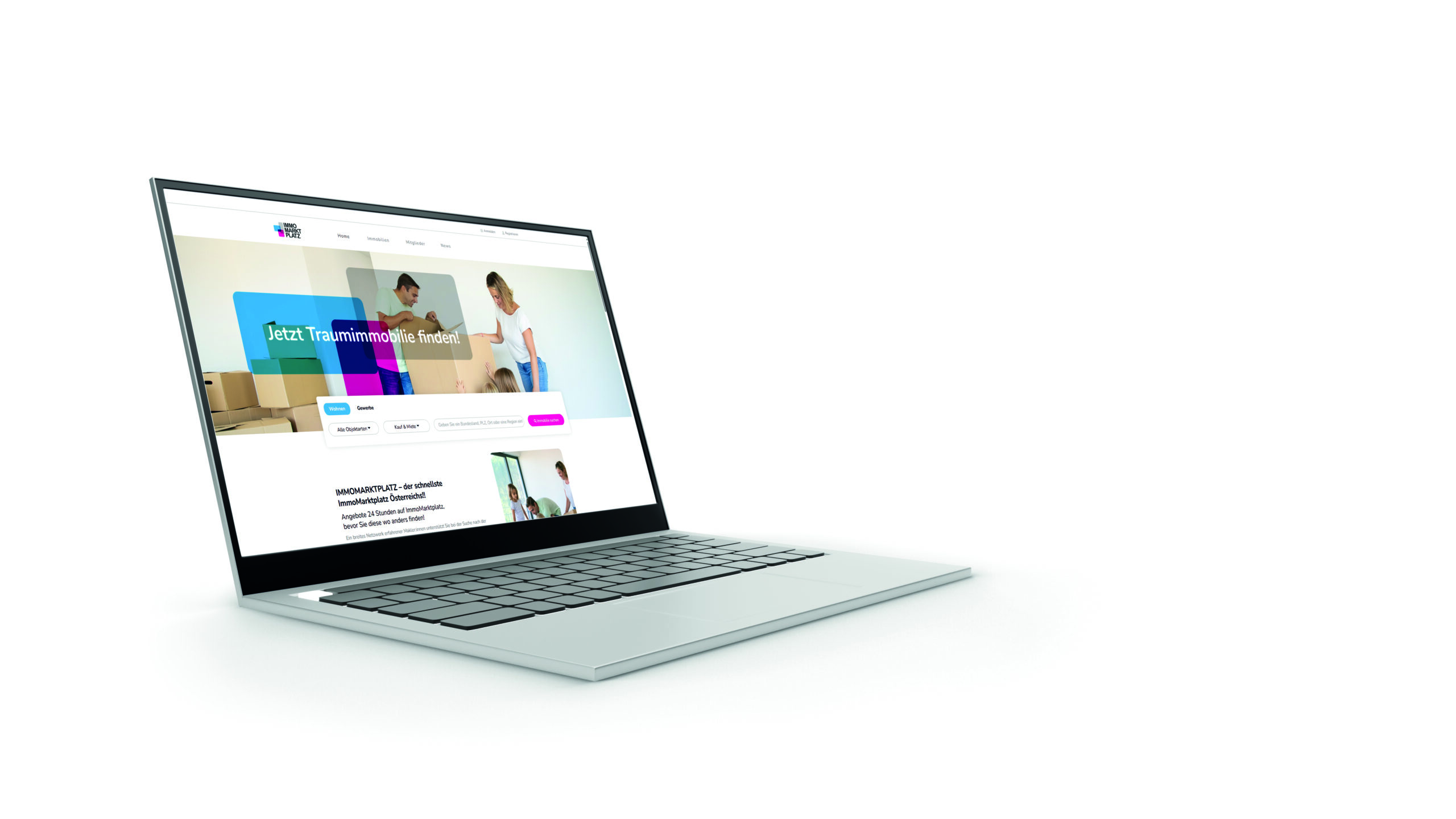 Das Jahr 2026 markiert einen echten Neustart. Das Corporate Design wurde vollständig überarbeitet; mit einer neuen Farbwelt, einem neuen Logo und einem frischen Key-Visual. Die Website selbst – technisch neu entwickelt – präsentiert sich klarer strukturiert, schneller und nutzerfreundlicher. Der Auftritt positioniert Immomarktplatz.at professionell, modern und auf Augenhöhe mit den Mitbewerbern.